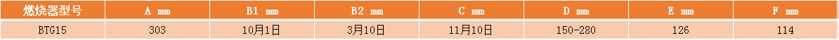 BTG15百得燃氣燃燒器數(shù)據(jù)參數(shù)表: