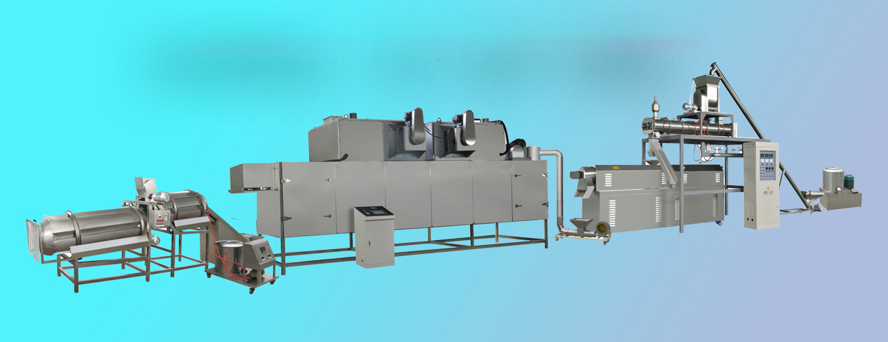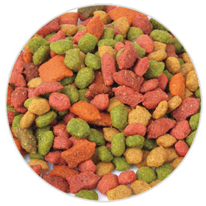 本生產(chǎn)線改變生產(chǎn)工藝流程可以生產(chǎn)寵物食品狗糧、貓糧、魚飼料等產(chǎn)品。鮮肉添加比例可以達到30%,滿足動物對蛋白的營養(yǎng)需求。膨化機可以選用干法膨化和濕法膨化;烘干機可以根據(jù)電、燃氣、蒸汽能源使用合理設計;調(diào)味設備有單滾筒,雙滾筒連續(xù)調(diào)味機,單頭自動稱重八角調(diào)味機、雙頭八角自動調(diào)味機、滾筒式批次稱重調(diào)味機等。