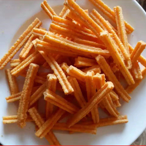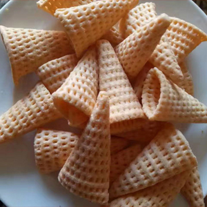 油炸膨化小食品生產線可以生產鍋巴、薯條、薯片、尖角脆、比薩卷等產品。通過變換膨化機的磨具和成型切斷機即可生產多種形狀的產品,較為復雜的三維立體妙脆角、小魚、等產品需配合整形切斷設備,通過更換滾刀性狀可以實現(xiàn)加工不同形狀的產品
