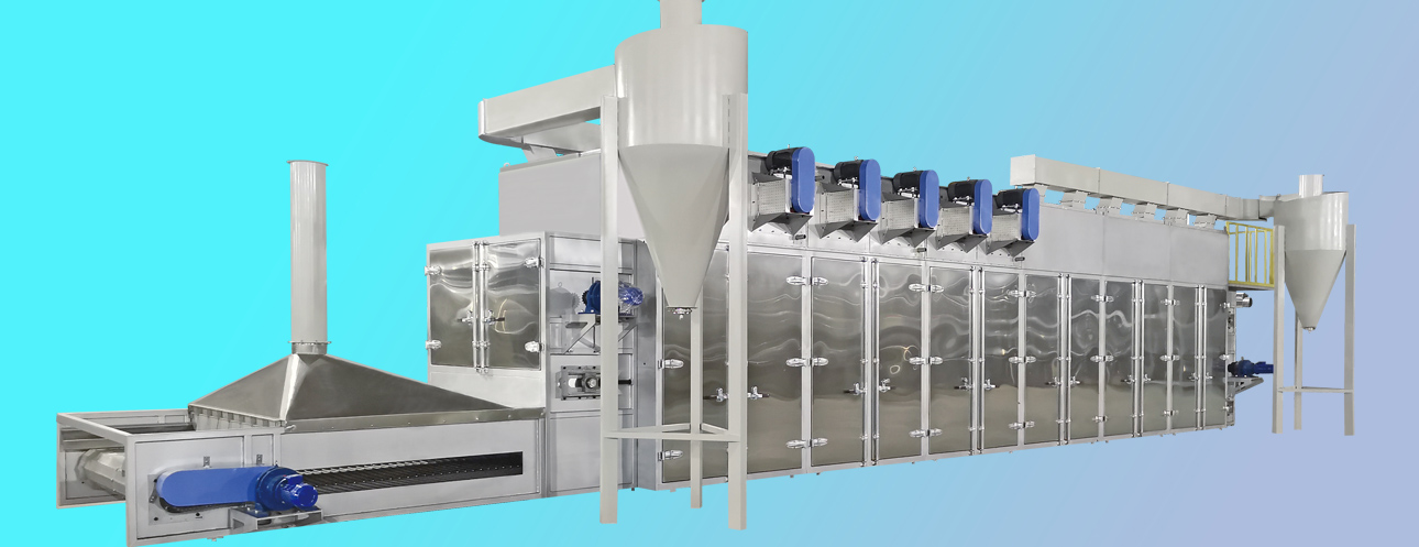 5、每2米為一個獨立干燥段,干燥段風(fēng)壓和風(fēng)速獨立循環(huán)控制,適用不同產(chǎn)量和不同產(chǎn)品的烘干。