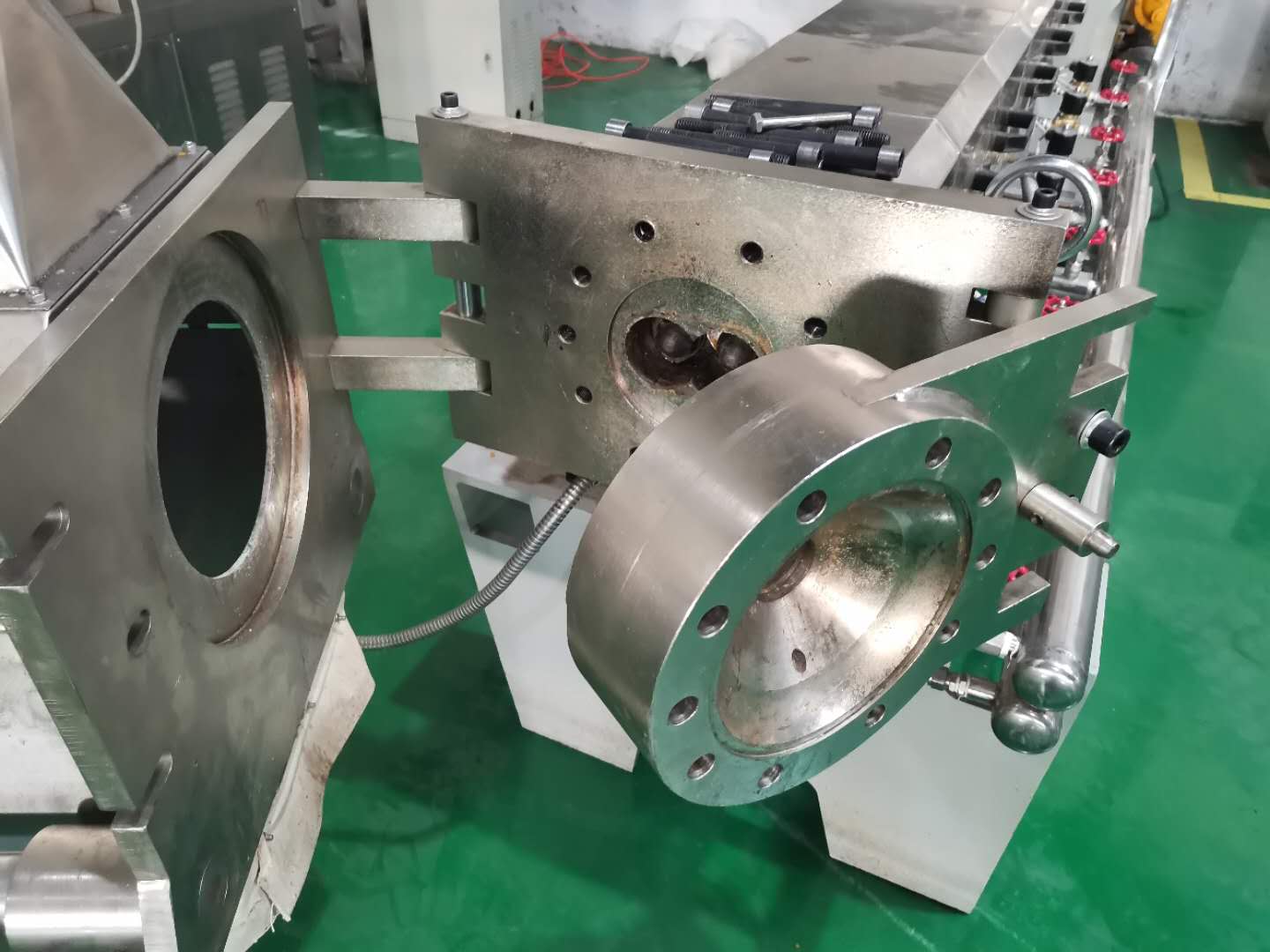 喂料機(jī):強(qiáng)制攪拌下料,喂料螺桿定量輸送,喂料均勻穩(wěn)定。