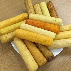原料混合-膨化-夾心-整形切斷-烘干-噴油調(diào)味-冷卻-包裝