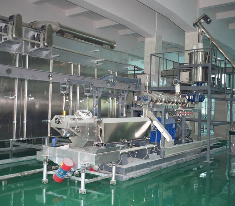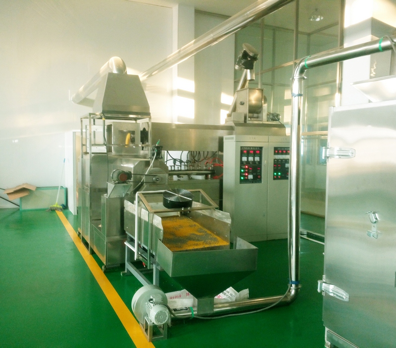 大型生產(chǎn)線:自動(dòng)配料站→粉碎機(jī)→混合機(jī)→膨化主機(jī)→振動(dòng)篩-風(fēng)送機(jī)→均質(zhì)滾筒-風(fēng)送機(jī)-多層振動(dòng)烘干機(jī)→風(fēng)送機(jī)-微波干燥-風(fēng)送機(jī)-二次烘干機(jī)-風(fēng)送機(jī)-多層振動(dòng)冷卻機(jī)-Z型提升機(jī)-包裝機(jī)